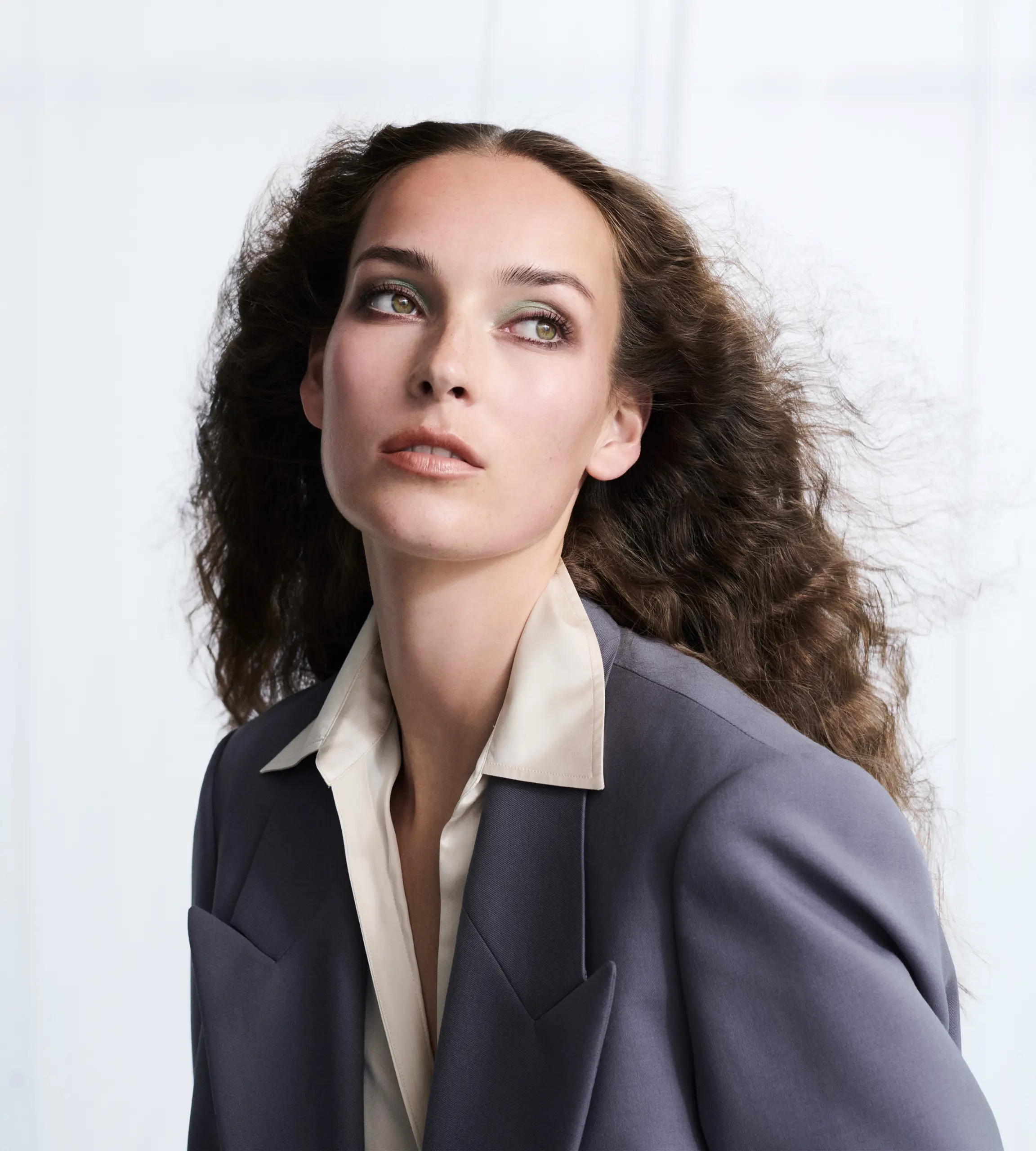 Vom harmonischen Spiel warmer und kühler Akzente geht eine starke Anziehungskraft aus. Das Puder-Rouge Tender Blush Golden Amber erwärmt Wangen, Augenlider und Schläfen, während der Pencil for Eyes in kühlem Walnut Silk dem Blick selbstsichere Tiefgründigkeit verleiht. Der Mund in tiefviolettem Purple Gem erhält durch den Lip Shine Glanz und lebendigen Ausdruck.